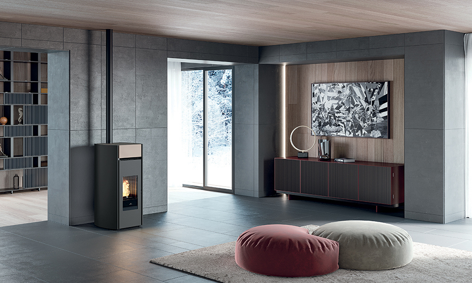 I rivestimenti delle stufe, in acciaio, ceramica e pietra ollare, garantiscono una grande presenza estetica e un’adattabilità sia in ambienti tradizionali che moderni.